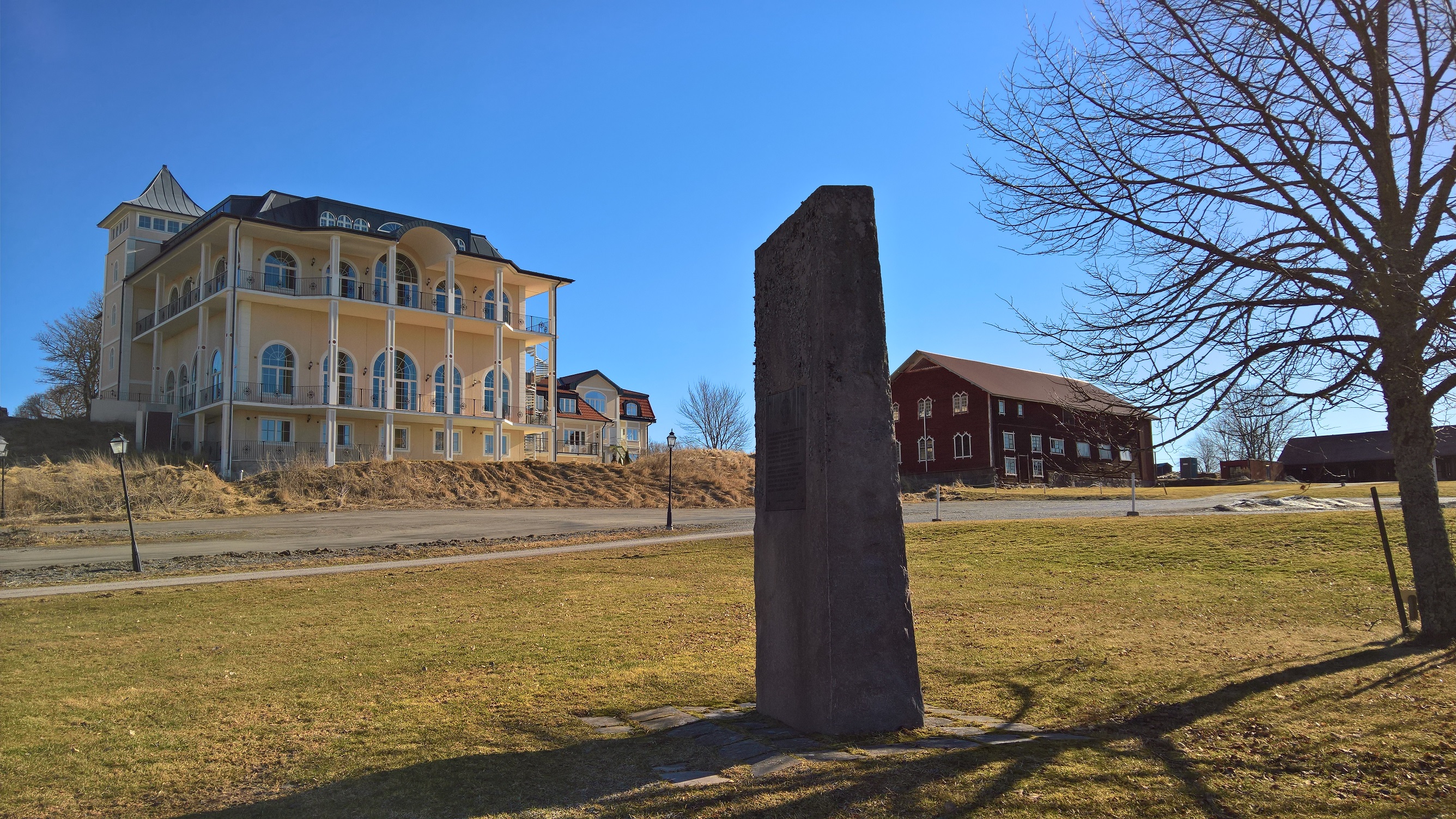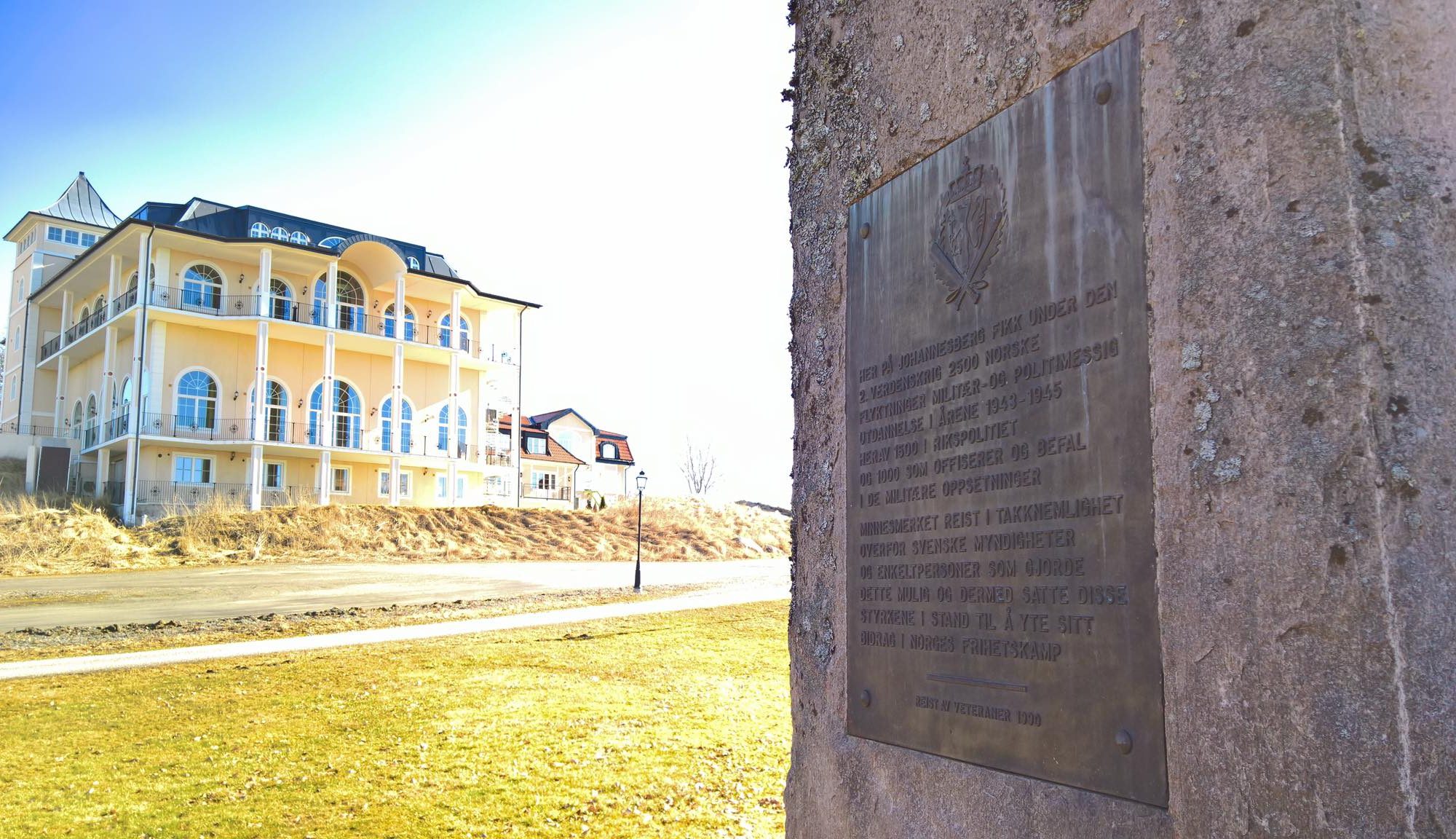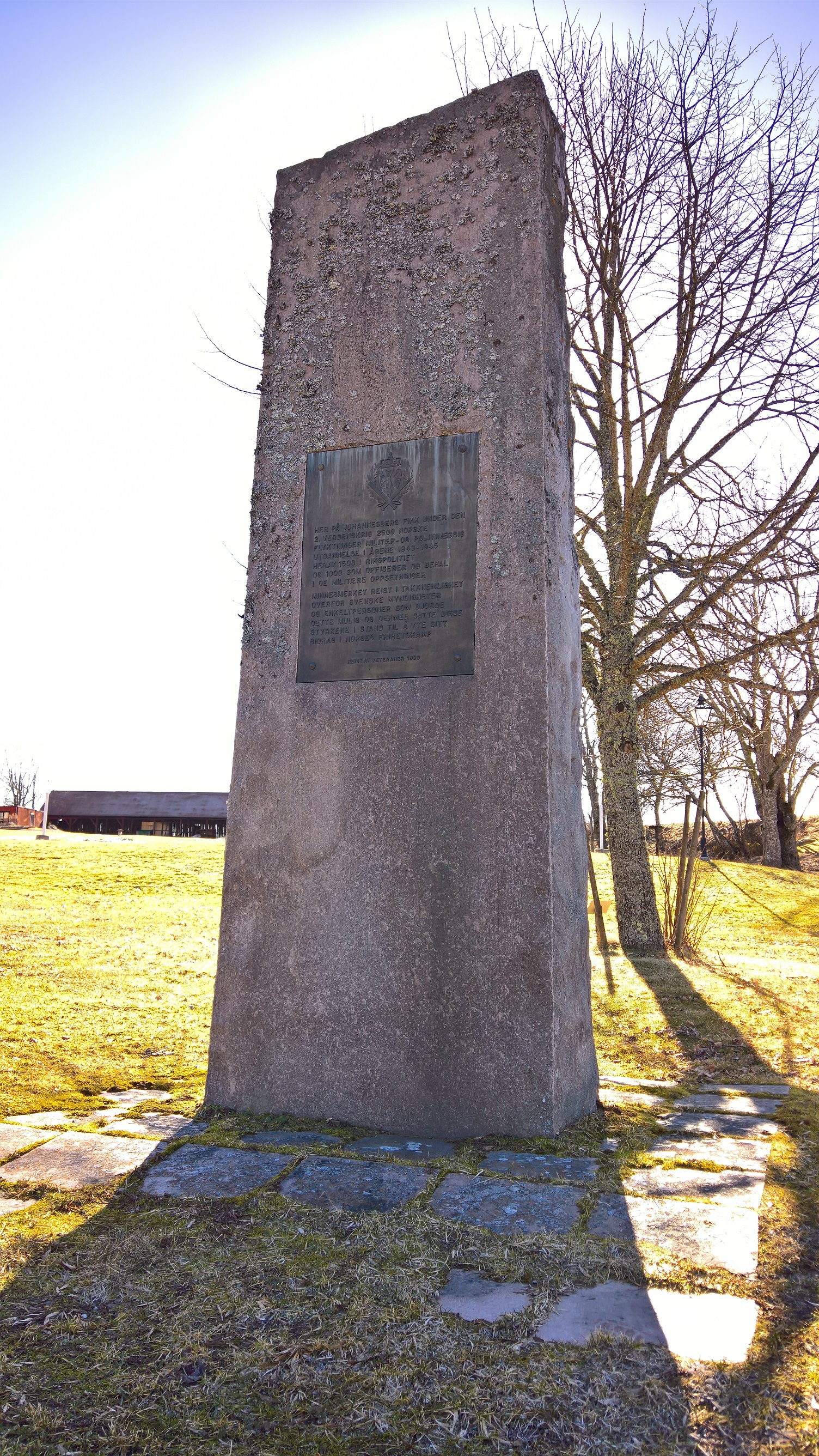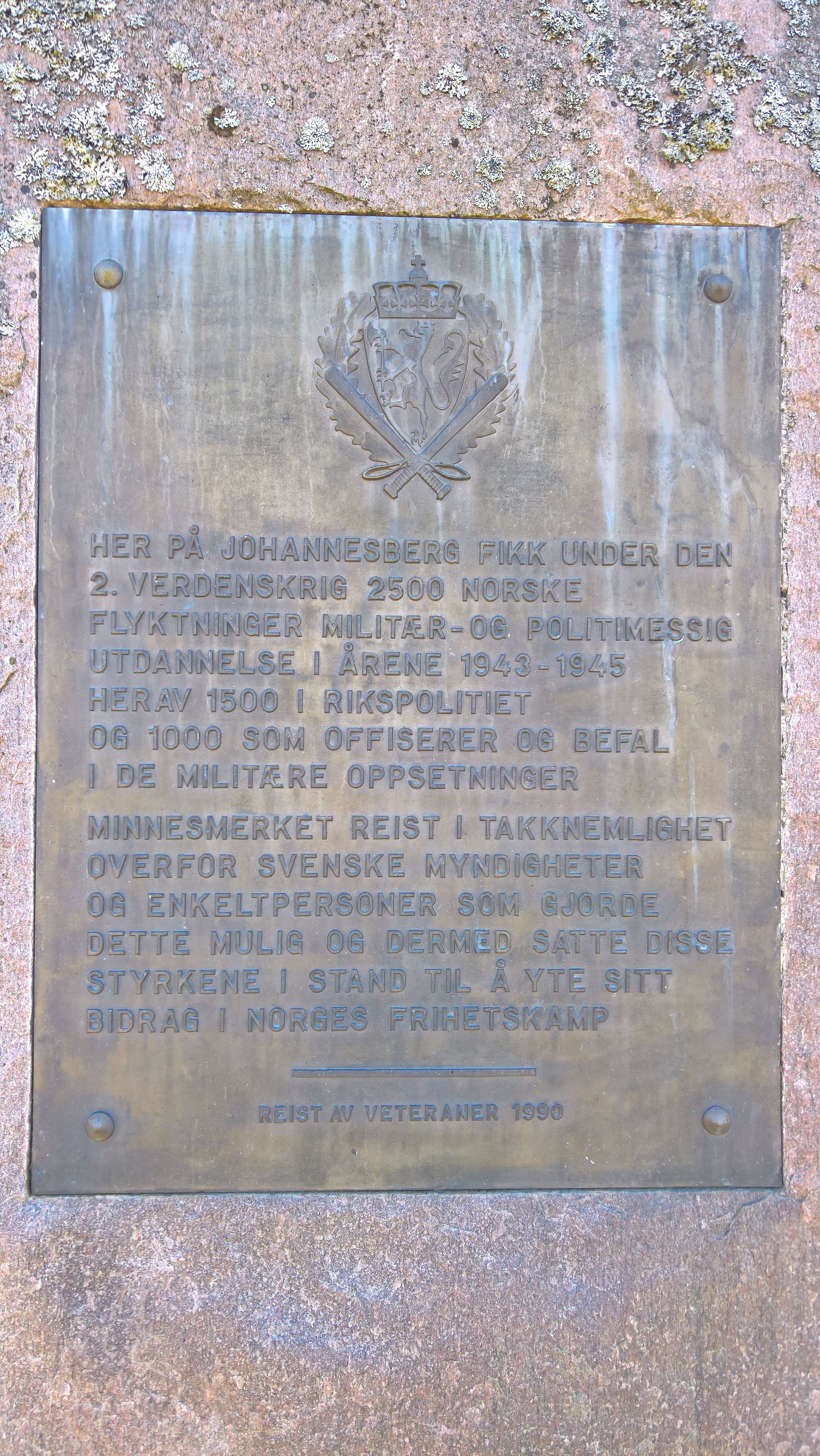 Minnesstenen restes 1990 av de norska krigsveteranerna som en gång i tiden fick sin militära utbildning här på Johannesbergs slott som ligger i Uppland i Rimbo socken, Norrtälje kommun.