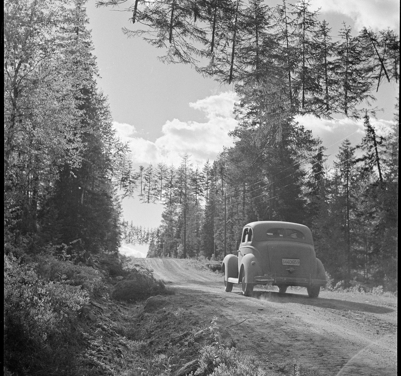 Finnarna har maskerat vägen vid Suomussalmi med trädtoppar uppspända över vägen.