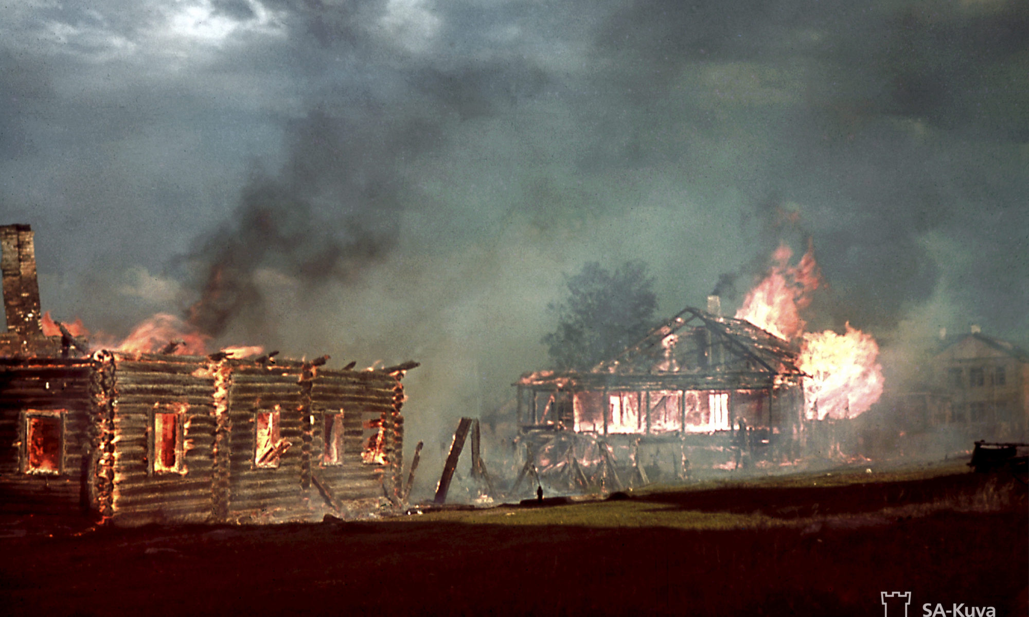 Publicerat 16 april, 20176 april, 2017 av Juho OjalaFragment ur Försvarsmaktens bildarkiv Poventsa brinner 02.07.1942. SA-kuva: JSdia250